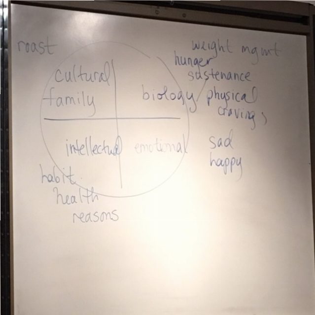 Lisa uses some of the strategies that are taught in this model for her session with the Calm in the Storm group I get to sit in on. She also provides information on how to take the full workshop in the future. The group I participate in has about five participants that have been regulars in the Calm in the Storm series. The counsellors running the group start with a check in and then introduce Lisa for the topic of the day. I am really impressed by how much information Lisa is able to share in under two hours, while still allowing for robust group conversation. Topics include: - Food and Mood connections (for example- which foods might have long term mood benefits, and which can put us in a bit of a spin- see Nicole’s 3PM hot chocolate….)
