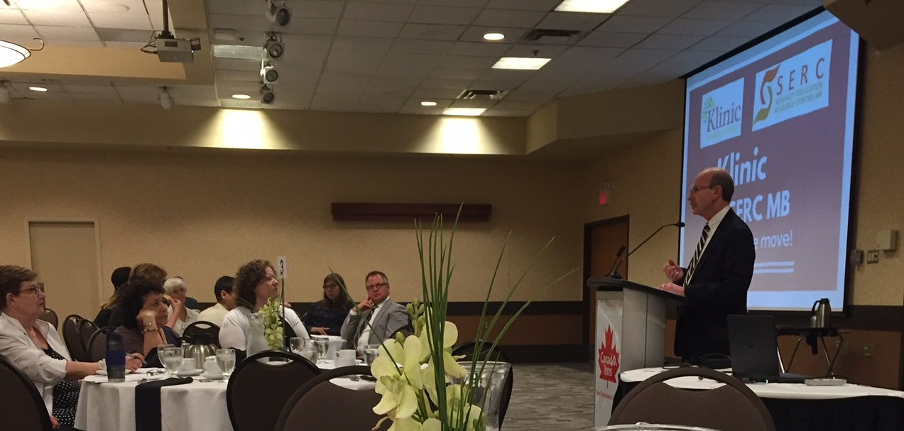 As I am in the lead up to my second anniversary in my role as Executive Director of Klinic and SERC, and we wind into what I hope will be a little more of the lazy hazy days of summer, I have been reflecting a great deal on the last year. In particular, I have been thinking about the experiences I have been able to share through the Day in a Life Initiative and this blog, and my thoughts on what is coming. I am writing this in the hours after our shared AGM, my second one, having just had the privilege of hearing WRHA President and CEO Milton Sussman talk about his thoughts on community health and the important role that organizations like ours play. I have also had the both daunting and exciting opportunity to share, for the first time with our staff and partners, the anticipated relocation and co-location plans for Klinic and SERC to 167 Sherbrook Street in the coming years. Two of the things that Milton spoke about are fundamentally tied to our announcement: “Community Health Centres are often the first place that many Manitoban’s access services”, and that we have “the ability to be nimble, adaptive, and innovative.” Milton Sussman at our AGM I knew when I accepted this role that there was a clear goal at the top of my to do list- it was certainly no secret. Klinic desperately needed new space to house our continuously expanding operations and services to ensure we were meeting the needs of the communities we serve, and co-location with SERC was the preferred solution to-do this and create more efficiency. A full house for our AGM! The last two years have included a significant amount of work by the management teams and boards in both organizations, and our partners and funders in the WRHA and the Province, to try and make this happen. I am pleased that we are now at a time when we can share this work with others. The reality is that it is critical for non-profits like ours to be continually innovating and changing to meet the needs of those we serve, and we need good spaces to do that. We need places where we can create comfortable, safe environments, respectful and responsive service delivery in as efficient a way as possible. We know that our spaces at Klinic have served us well for a long time, and some of these changes will be hard for many; saying goodbye to our Broadway house, where our roots are, or our second floor patio at the portage site where so many staff enjoy their lunch during warm summer days. However, we also know that change is necessary to growth. We have some time to think about how we do this. Due to the current lease arrangements on the new site, this relocation could take 3-8 years. This gives us some real time to think about how we make the right kind of spaces for our staff and clients to feel comfortable, safe and respected. I am very excited to work with our staff and boards over the next few years to plan the best way we can make this happen. Thank you to everyone who has been a part of getting us here, fingers crossed, as we try to clear those last few hurdles to make our dream a reality. Got an idea for how we communicate and plan for the relocation? Do you have questions about what this means for the future? Feel free to email me at nchammartin@klinic.mb.ca