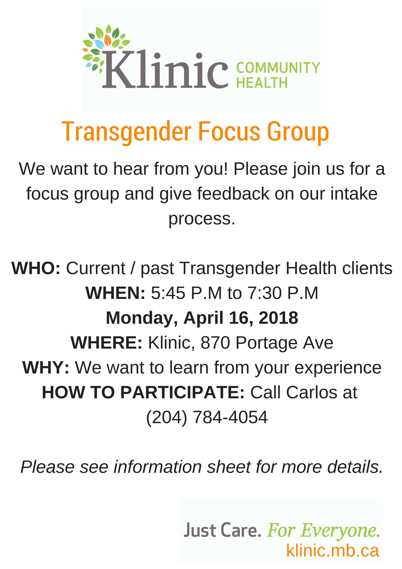 : **CANCELLED**Transgender Focus Group on April 16th**CANCELLED**Transgender Focus Group on April 16th