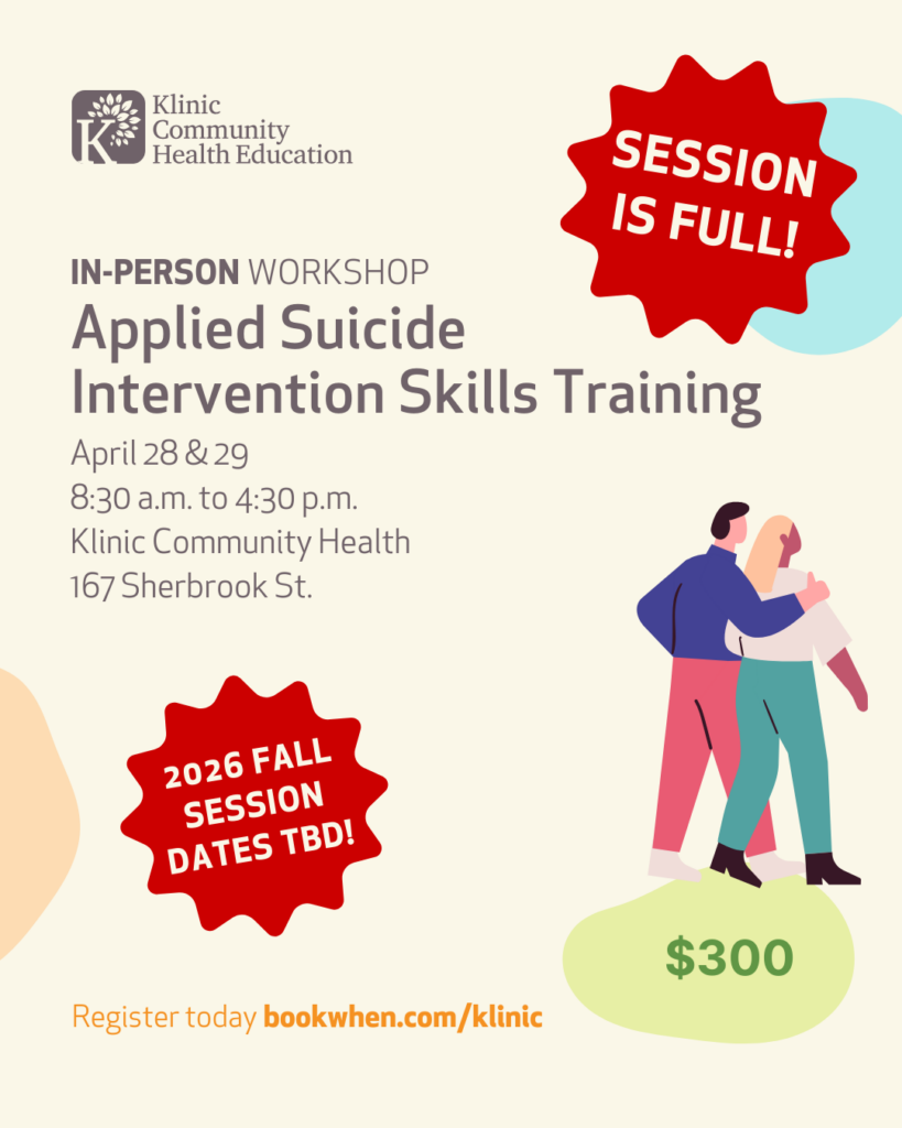 We want everyone to have access to our learning opportunities. If workshop fees are a barrier, please contact our Public Education team at education@klinic.mb.ca.